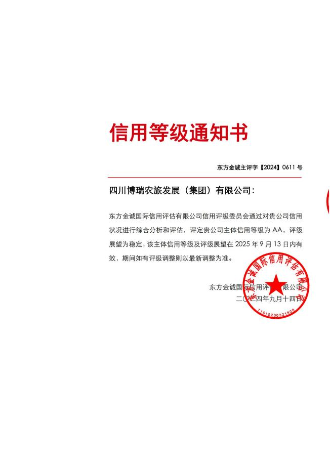 自2019年成立以來,博瑞農旅集團認真貫徹落實區委、區政府戰略決策部署,不斷調整產業結構、塑造新型國企運行內核。在區財政局的悉心指導下,在四川省經濟促進會的全力幫助下,博瑞農旅獲得了2A主體信用評級,首次擁有了在金融市場直接融資的能力,標志著博瑞農旅集團邁入新的發展階段,將有利于博瑞農旅集團進一步豐富拓展融資渠道,充分利用資本市場直接融資優勢,大幅降低資金成本,沖破融資“天花板”,為企業快速發展賦予強勁動能。此次評級成功,為公司下一步的債券發行、科創基金設立并助推雨城工業復興打下了堅實的信用基礎和資金基礎。